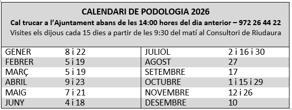 Agenda, General CALENDARI DE PODOLOGIA 2026 01/01/2026 - 31/01/2027 < Entrada AnteriorEntrada Posterior >